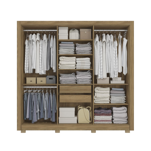 Ideal para quartos de casal, este roupeiro oferece amplo espaço para organização de roupas, sapatos e acessórios. Seu design moderno e funcionalidade atendem às necessidades do dia a dia, proporcionando praticidade e estilo ao ambiente.